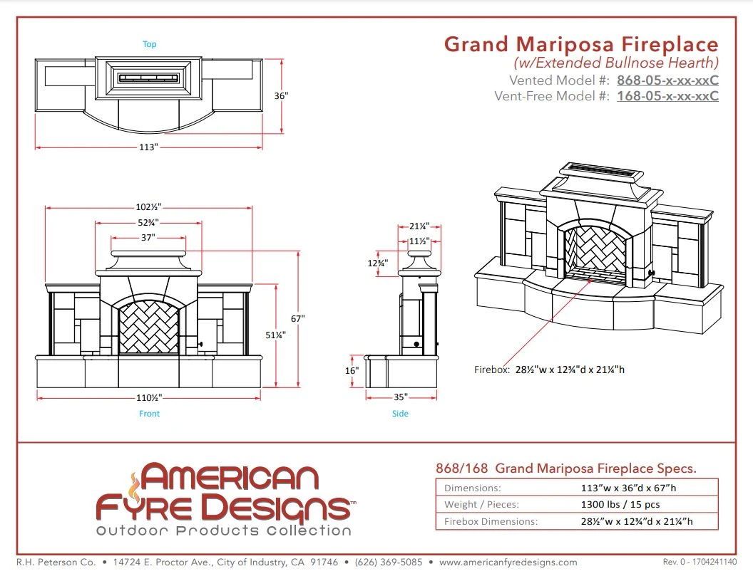 | This full-sized classic outdoor fireplace provides a warm environment for friends and family to spend an evening together. The Grand Series Fireplaces incorporate wall extension panels to expand upon the body of the fireplace to create many new decorating opportunities while also providing a beautiful separation to the world behind the fireplace. Fireplaces may be ordered with recessed hearth to accommodate field cladding in tile, stone or other veneer.