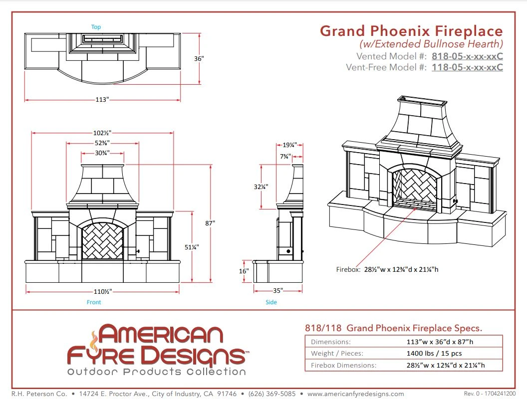 113″ Grand Phoenix Outdoor Fireplace W/ Extended Hearth