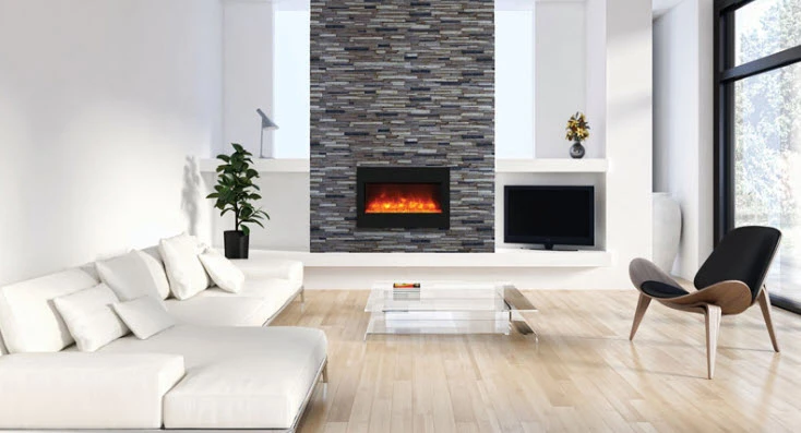 | By design the new ZECL-33-3624-BG zero clearance electric fireplace is an excellent choice for new construction or a renovation project. This fireplace is simple and easy to install. The aesthetically pleasing ZECL-33-3624-BG fireplace features a black glass surround that easily compliments any decor. This electric fireplace comes standard with an LED ember lights log set.