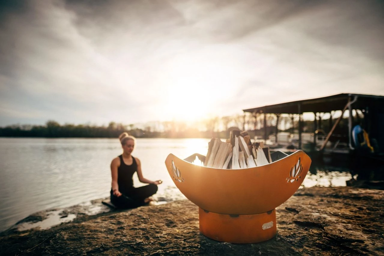 | Namaste represents the belief that there is a Divine spark within each of us. The four Lotus flower silhouettes represent the heart. The heart can be visualized as a lotus flower unfolding at the center of the chest. Like a lotus that contracts and opens according to the light, our spiritual heart can be awakened through various yoga practices and meditation while watching the dance of the flame. “Namaste”.
