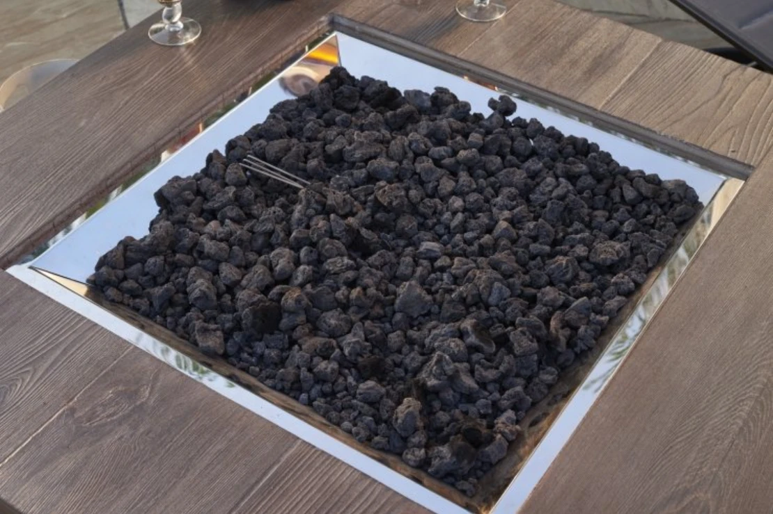 | The Driftwood Havenwood Gas Fire Pit Table offers a contemporary style that’s perfect for entertaining. The unique Driftwood Everblend textured top pairs with a White powder-coated metal base. The 12″ x 24″ Crystal Fire® Plus burner offers a warm, inviting glow. Every handcrafted Everblend top is one-of-a-kind – variations in color, texture, and pattern will occur.