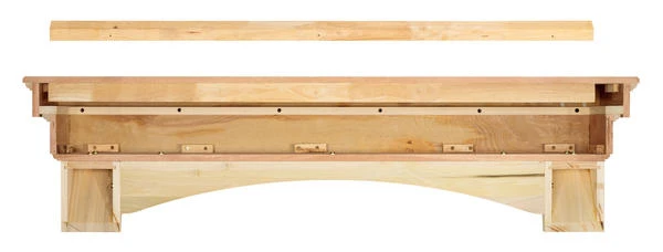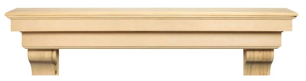 | It’s the first piece of furniture in any home. There’s nothing as warm and welcoming as a crackling fire in an open fireplace. The dancing flames can lift your spirits and melt away the most stressful day in a matter of minutes. But to truly be part of the home, a fireplace must warm our hearts even when there is no fire in the grate. Pearl does not treat the mantel as trim or molding but as a beautiful piece of furniture that is the focal point of the entire room, the emotional core. It represents roots, heritage and tradition. Furniture is arranged around it, precious treasures are displayed on it, and it provides balance and stability to the entire room. Pearl Mantels features fine furniture quality, stunning details and classic designs that will enhance any decor. The Auburn shelf is made to please. Three design choices! The shelf comes to you with three separate design components consisting of the shelf, a pair of corbels and the arch. You will have the option of installing just the shelf, the shelf and the corbels together or the combination of the shelf, corbels and arch. Whether your design taste is clean, classic, traditional… the Auburn has your style covered. Hand crafted from Asian hardwoods and veneers that take paint and stain beautifully. Use over the hearth, in the bedroom, bathroom, kitchen, den or anywhere you need a little something extra for storage or treasures. Its uses are only limited by your imagination. Mitered hanger boards are included for ease of hanging. Look for the pearl inlay that graces the right hand side of the shelf as proof that you have received an authentic Pearl Mantel. Your inlay is masked so that you may easily paint or stain around it. Simply remove the mask when done. Light sanding and filling is recommended before paint or stain is applied. Also available finished.