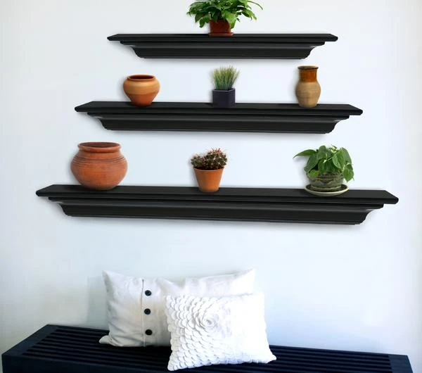 | Fine furniture for your walls! The Crestwood shelf provides effortless beauty to the room. The clean and simple lines will fit into any decor. Warm Chocolate Brown semi-gloss paint. The shelf is created from medium density fiberboard also known as MDF. The ample ten inch shelf depth allows plenty of display room. Use over the hearth, in the bedroom, bathroom, kitchen, den or anywhere you need a little something extra for storage or treasures. Its uses are only limited by your imagination. Mitered hanger boards are included for ease of hanging. Look for the pearl inlay that graces the right hand side of the shelf as proof that you have received an authentic Pearl Mantel. Pearl Mantels features fine furniture quality, stunning details and classic designs that will enhance any decor. Also available in White and Black.