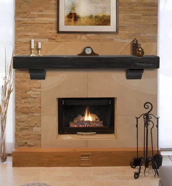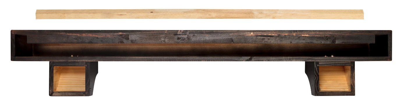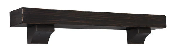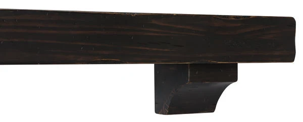 | It’s the first piece of furniture in any home. There’s nothing as warm and welcoming as a crackling fire in an open fireplace. The dancing flames can lift your spirits and melt away the most stressful day in a matter of minutes. But to truly be part of the home, a fireplace must warm our hearts even when there is no fire in the grate. Pearl does not treat the mantel as trim or molding but as a beautiful piece of furniture that is the focal point of the entire room, the emotional core. It represents roots, heritage and tradition. Furniture is arranged around it, precious treasures are displayed on it, and it provides balance and stability to the entire room. Pearl Mantels features fine furniture quality, stunning details and classic designs that will enhance any decor. This Shenandoah Espresso pine mantel shelf is confident yet yielding. Warm dark espresso coffee coloring with rasped edges give hints of copper and other soft brown earthy tones. Hand-hewn edges and distressing enhance the natural beauty of the wood grain. The ample nine inch shelf depth allows plenty of display room. The shelf may be may be hung with or without corbels, which are packed separately. Use over the hearth, in the bedroom, bathroom, kitchen, den or anywhere you need a little something extra for storage or treasures. Its uses are only limited by your imagination. Mitered hanger boards are included for ease of hanging. Look for the pearl inlay that graces the right hand side of the shelf as proof that you have received an authentic Pearl Mantel. Pearl Mantels features fine furniture quality, stunning details and classic designs that will enhance any decor. Also available unfinished.