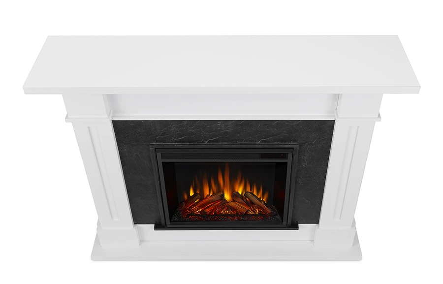 | Create a luxurious, relaxing atmosphere with the elegant design of The Kipling. Carved pillars and rich surrounds give this piece a unique and timeless style. The VividFlame Electric Firebox mimics the look of a real fire, but does not require a chimney or vents and plugs into a standard outlet for convenient set up. Features include infrared LED technology, sleek touch controls, and dynamic glowing embers.