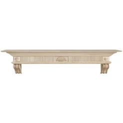 This mantel shelf introduces a new design that is sure to bring timeless beauty and grace to your home. Mantel shelves are conceived in the design studio to be the focal point of your room, an impression that will last a lifetime for family and friends. This mantel shelf will enhance any decor in your home, and is hand crafted and carved from solid Choi wood which is a beautiful Asian hardwood. Choi is similar to American White Oak, it is light colored, tight grained, and its character allows for ease of painting or staining in any color. The unfinished version is available at a lower price and is primed and ready for immediate painting. The convenient shelf allows for the display of family portraits, mantel clocks, decorative candles, and or anything you would like to place on display.