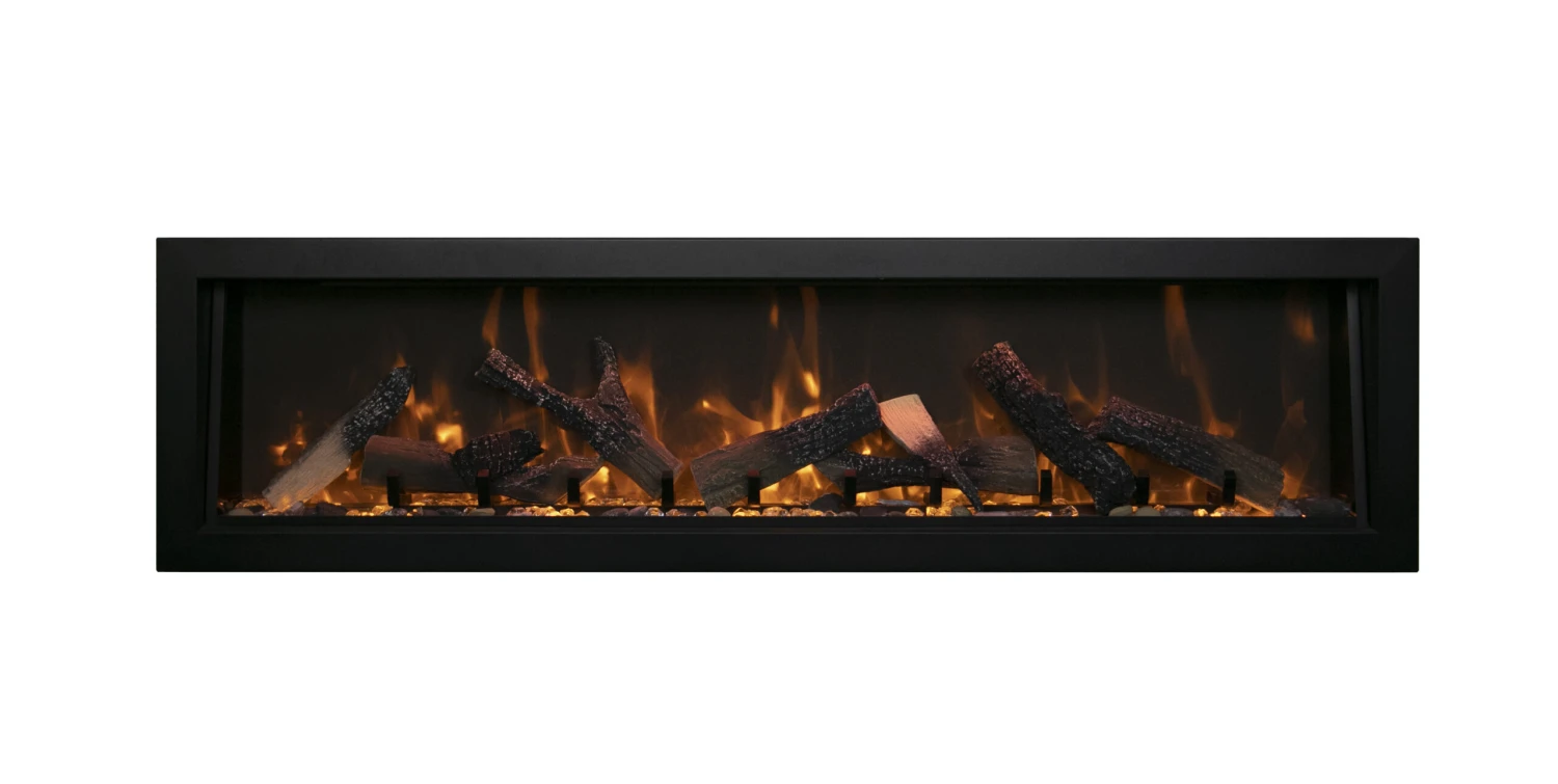 | This stylish electric fireplace will be a focal point in any room, indoor or outdoor. The Deep Series gives you a 12″ depth and multiple length options, as well as – A full Frame Viewing Area – giving you the ability to install your fireplace with your choice of finishing material built right to the glass for a “clean face” design or using the provided black metal surround. Your choice – your design!