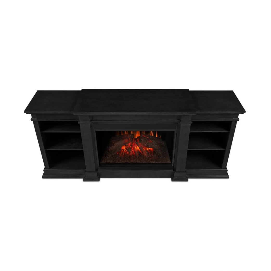 | The Eliot Grand Media Console has a classic design that blends well with many interiors to provide a warm, charming centerpiece for your home. Exclusively designed, the Vivid Flame Grand Electric Firebox is 30% larger than our standard firebox and mimics the look of a real fire, but does not require a chimney or vents. Features include infrared LED technology, six thermostat settings and dynamic glowing embers.